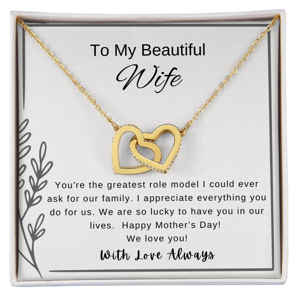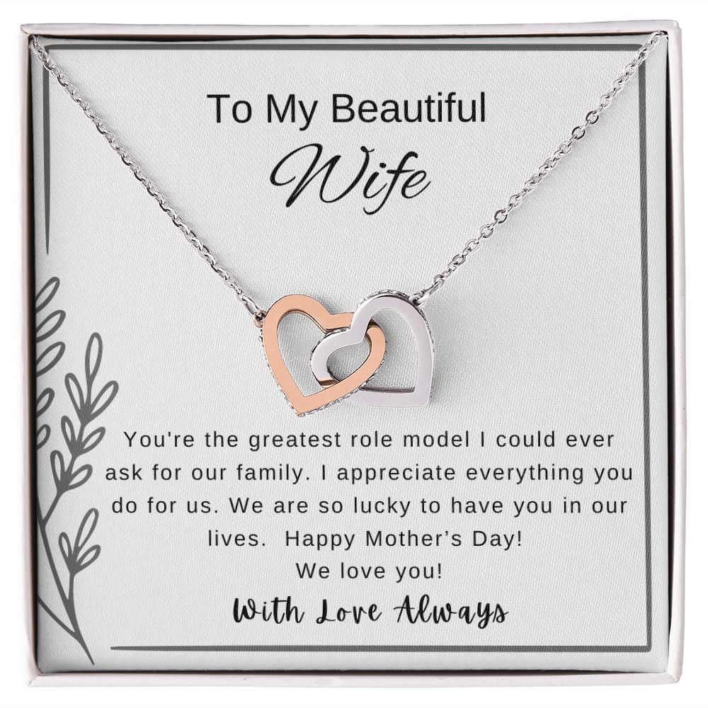 Give your wife the gift that symbolizes your never-ending love. Featuring two lovely hearts embellished with cubic zirconia crystals, this Interlocking Hearts necklace is the perfect accessory for everyday wear. Make sure to dazzle your wife by gifting her this stunning necklace for Mother's Day.