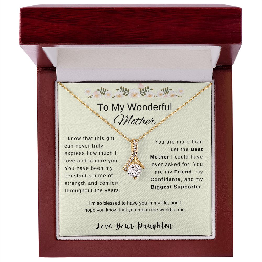 Imagine her reaction when she opens this stunning gift! This necklace features a petite ribbon shaped pendant that is sure to dazzle your special someone. Make sure to get her a Mother's Day gift she will love for years to come.