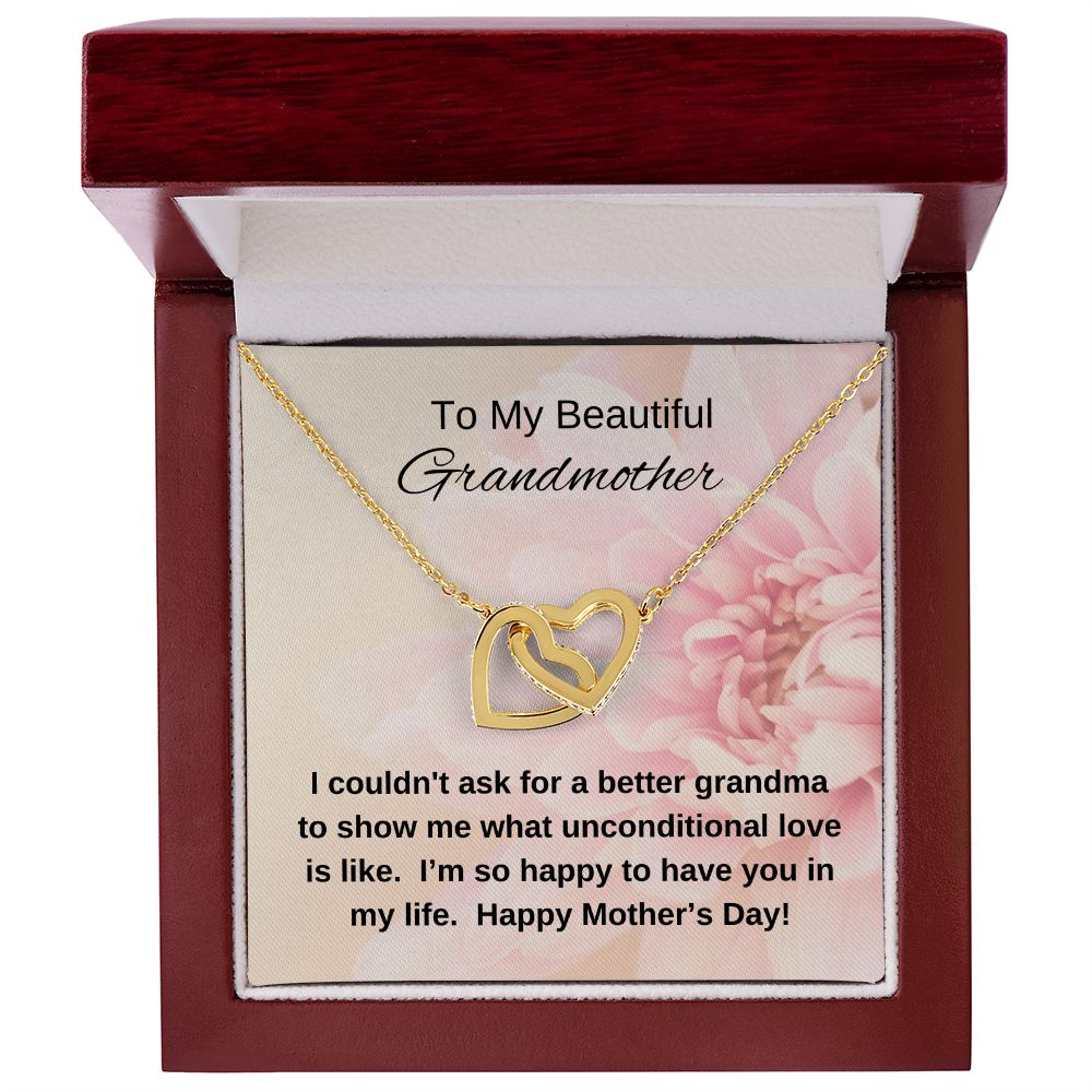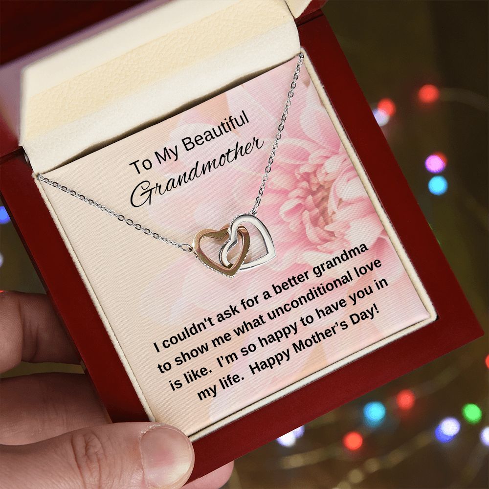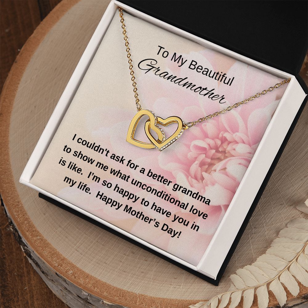 Give your grandmother the gift that symbolizes your never-ending love. Featuring two lovely hearts embellished with cubic zirconia crystals, this Interlocking Hearts necklace is the perfect accessory for everyday wear. Make sure to dazzle your grandmother by gifting her this stunning necklace for Mother's Day.